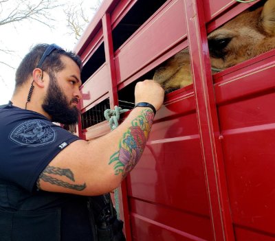 People in the area searched for the elusive animal until 2 a.m., but failed to locate the camel. It was sighted running during the afternoon of the next day. Officers cornered the camel and tied her to a tree until the owners retrieved her with their trailer.
