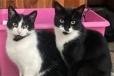 Donna Hibbert of Darly Abbey, Derby, UK, has two tuxedo cats. Luna collects pieces of garbage to bring to Hibbert. But Harry (on the left in the picture) goes the extra mile to bring home better loot, including fine clothing taken from clotheslines or even from inside other people's homes! Harry has brought home sausages, designer underwear, shoes, and anything he can find that might please Hibbert. But it is causing her quite some embarrassment.
