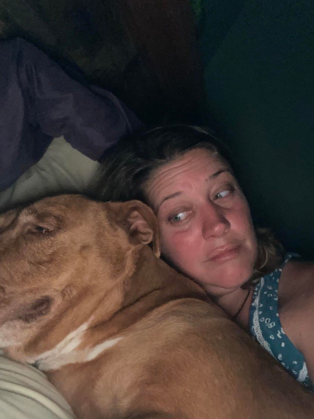 Local News 12 reports that Julie and Jimmy Johnson, who own three dogs already, woke up one morning to find that a strange dog was snuggling with them in their bed at their home in Polk County, Tennessee. The pit bull was very chill and relaxed like walking into a strangers home and going to bed was a normal thing to do.