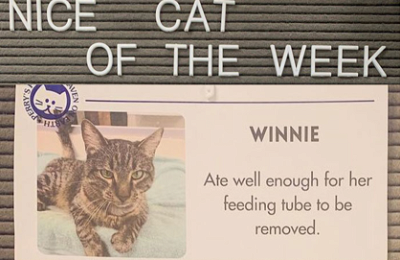 A few years ago, the National Aquarium of New Zealand went viral with their Naughty Penguin of the Month signs. The idea caught on elsewhere. Heaven on Earth Cat Rescue in Los Angeles has a title for the nice cat of the week and the naughty cat of the week, posted with pictures and the reasoning behind the designation.