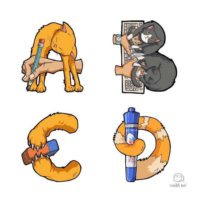 Hoàng Người Đá, an artist in Ho Chi Minh City, Vietnam, has an online portfolio that screams out inspirations from pop culture and graffiti. One of his projects is the Catphabet, which you can find in full at the art magazine DeMilked. It’s a complete English alphabet made with the shapes and behaviors of cats.