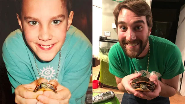 Paul McDonald was eight years old when he found a juvenile painted turtle and took her home. He named her Colors and they became best friends. His parents had no idea that the turtle would survive for long, but Paul took her with him as he moved out on his own and then from state to state. Colors has been with Paul for twenty-four years now! Paul met a woman named Shannon who was also an animal lover. When she showed great enthusiasm about Colors' birthday party, Paul knew she was the one. The two wanted to incorporate both Shannon's dog and Colors into their wedding. Paul decided the turtle would serve as their flower girl!