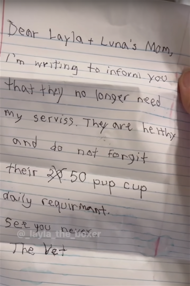 Layla the boxer and Luna the Aussie do not like visits to the veterinarian. They have seen their mom write letters and read letters, and they came up with a grand scheme to write a letter from their vet, so they don't have to go to the clinic anymore. They are not skilled forgers. In fact they are on par with an elementary school student who tries to write a note from their parents. Mom isn't fooled, but she's impressed with their resourcefulness.